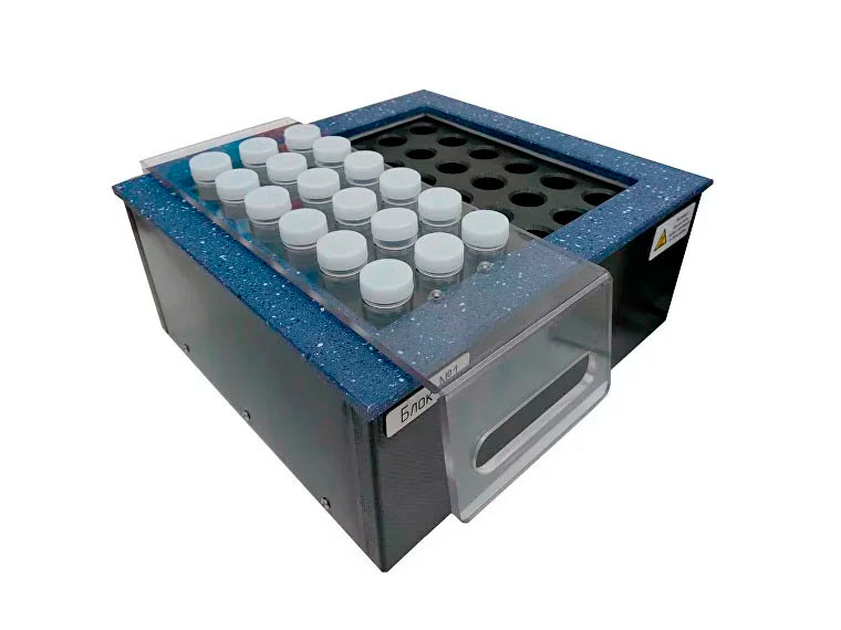 Основой системы ADS является графитовый блок-нагреватель, с тефлоновым покрытием. Блок заключен в теплоизолированный корпус, и во время работы закрыт планшетами с установленными пробирками, что исключает контакт персонала с нагретыми частями. Система управляется с внешнего контроллера, который может быть расположен вне вытяжного шкафа, что облегчает контроль над процессом разложения и минимизирует воздействие паров кислот на электронные компоненты системы.
