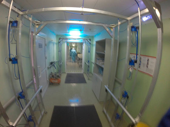В настоящее время несколько моделей поста установлены в Новосибирскую областную клиническую больницу в шлюзы между "красной" и "желтой" зонами, между "желтой" и "чистой" зонами.